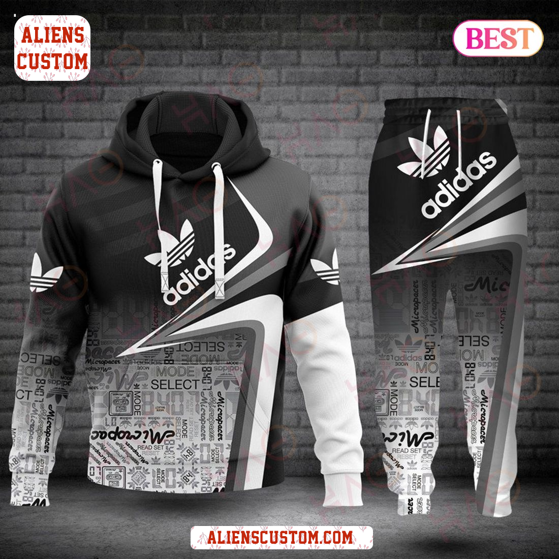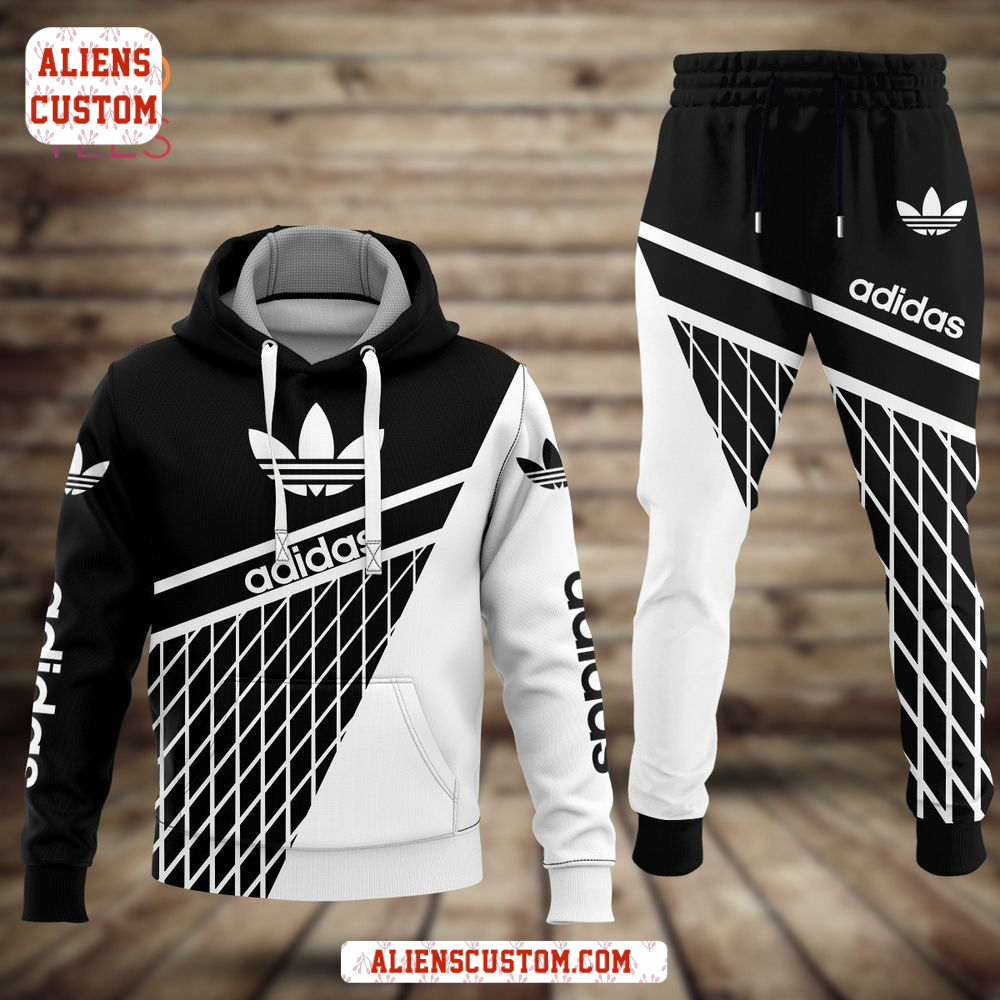 $29.99Alienscustom – Adidas Luxury Brand Black Mix White Hoodie And Pants All Over Printed