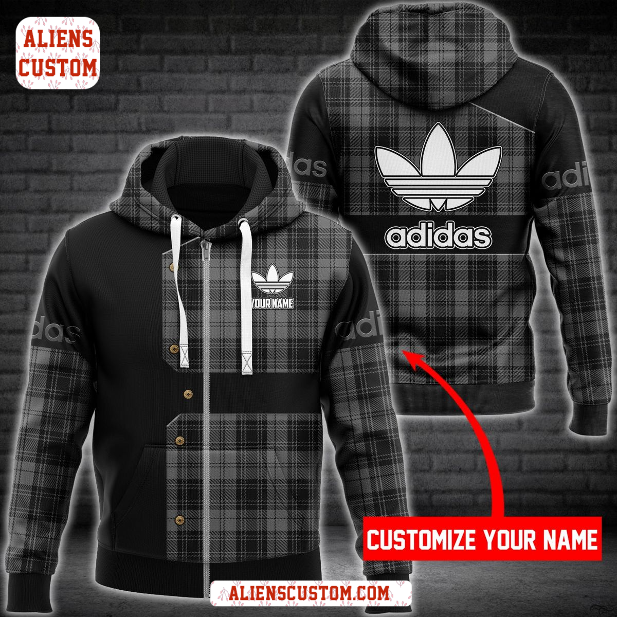 $29.99Alienscustom – BEST Adidas Luxury Brand Full Black Mix White Plaid Hoodi Limited Edition