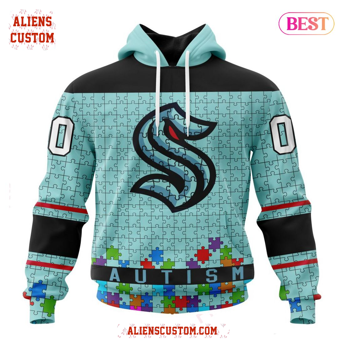 Alienscustom - BEST NHL Seattle Kraken Specialized Unisex Kits Hockey Fights Against Autism 3D Hoodie