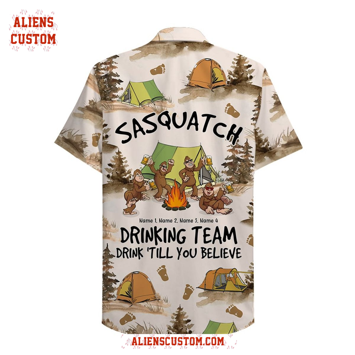 Alienscustom – Sasquatch Drinking Team, Drink Till You Believe Personalized Camping Bigfoot Hawaiian Shirt