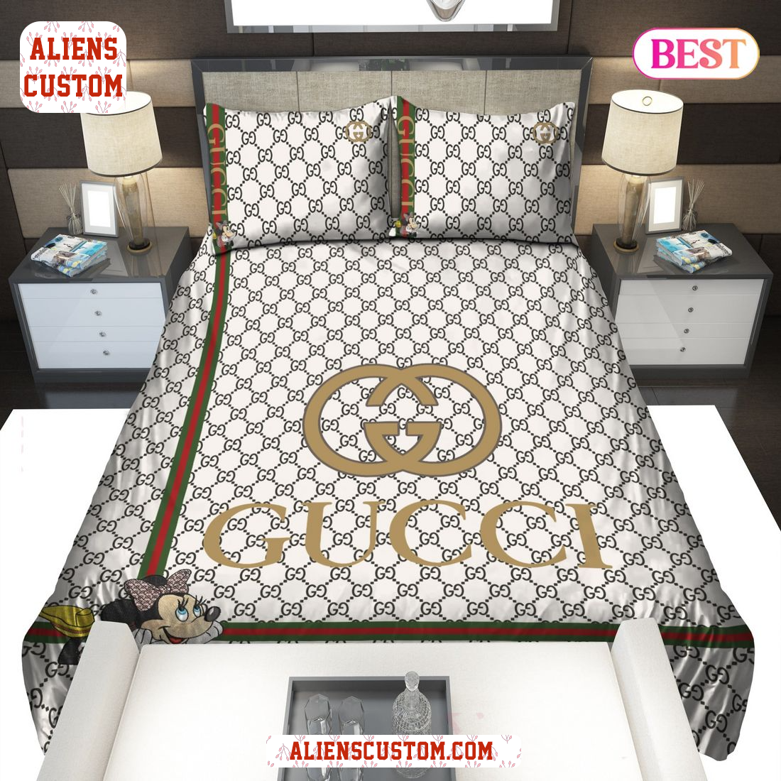 Alienscustom – Buy Gold Gucci Mickey Mouse Bedding Sets Bed Sets, Bedroom Sets, Comforter Sets, Duvet Cover, Bedspread