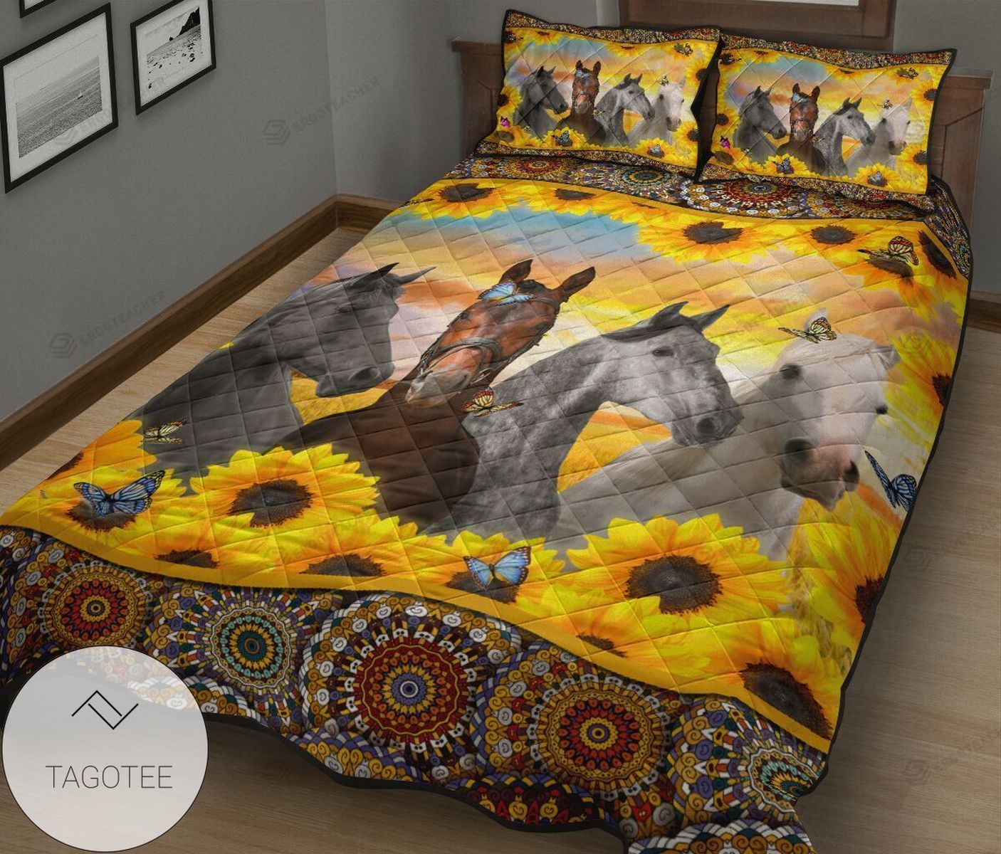 Horse In Sunflowers Frame, Mandala Quilt Bed Sheets Spread Quilt Bedding Sets 2022
