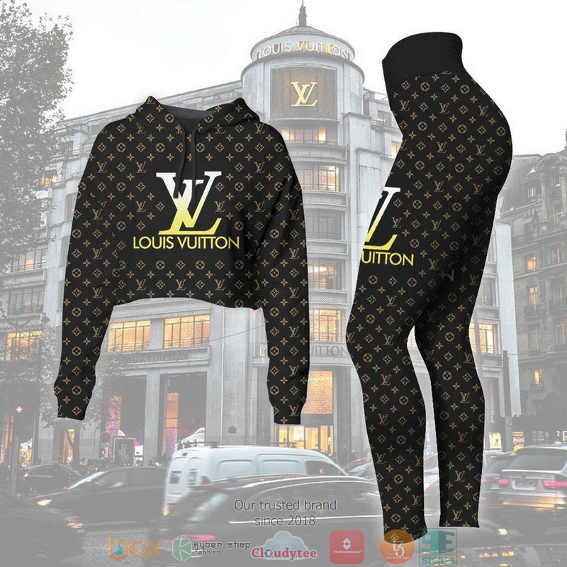 Louis Vuitton Gold LV Black Crop top hoodie and Legging