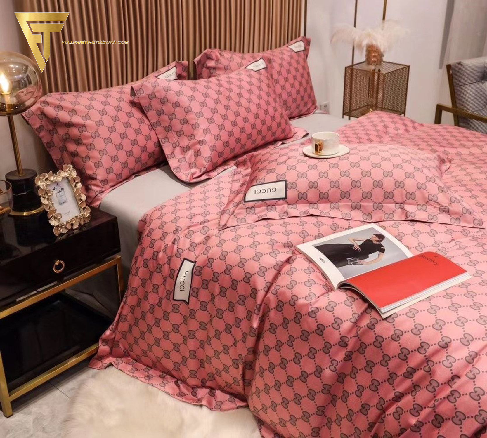 [Top Trending] Gucci Baby Pink Background All Over Print Duvet Cover Bedroom Sets